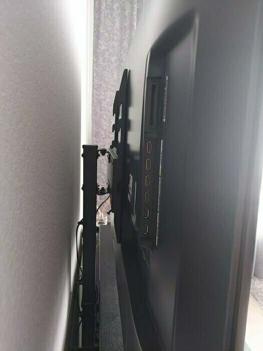 Основательный кронштейн. При том, что самый дешёвый в своём классе. За счёт выноса к центру оси горизонтального поворота более устойчив, нежели конкуренты.