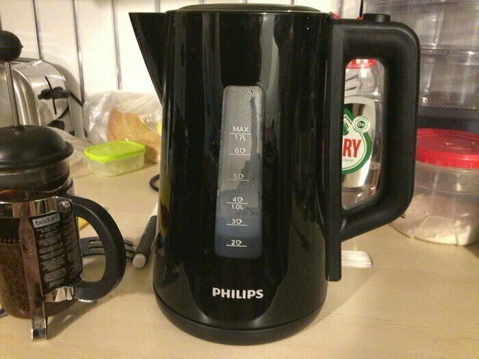 Прозрачная шкала уровня воды только с одной стороны, очень плохо(нестабильно) выливается вода из чайника(если он заполнен менее чем наполовину).