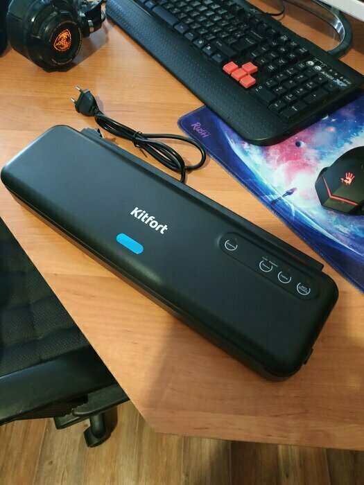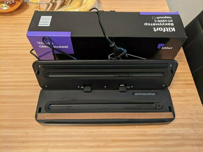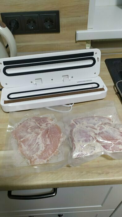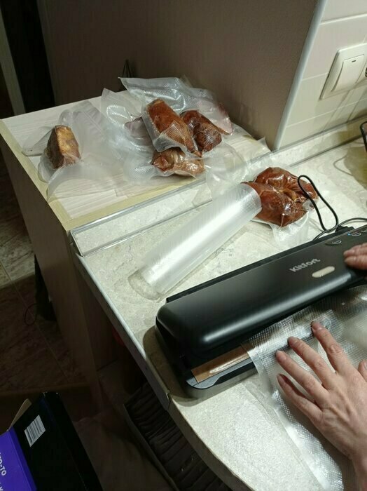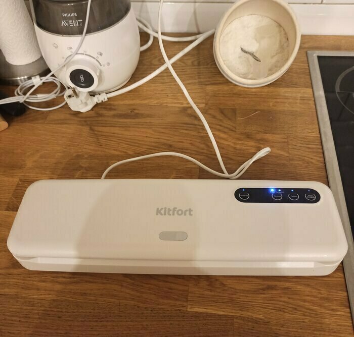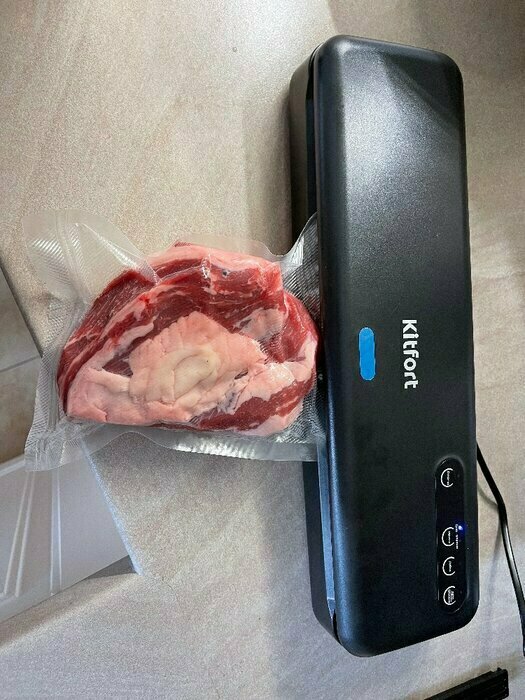 До этого был вакууматор Kitfort менее мощный и без влажного режима. Купила новый в Ситилинк по акции. В использовании несколько дней, всё устраивает. Хорошо откачивает и запаивает двойным швом. Есть отдельно откачка, отдельно пайка. Иногда это нужно. Даже резак на магните есть и трубочка для вакуумных контейнеров. Компактный. Рекомендую.