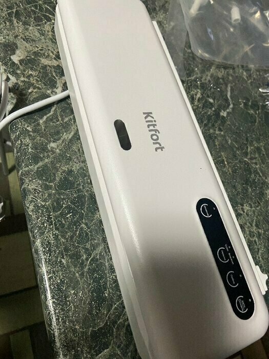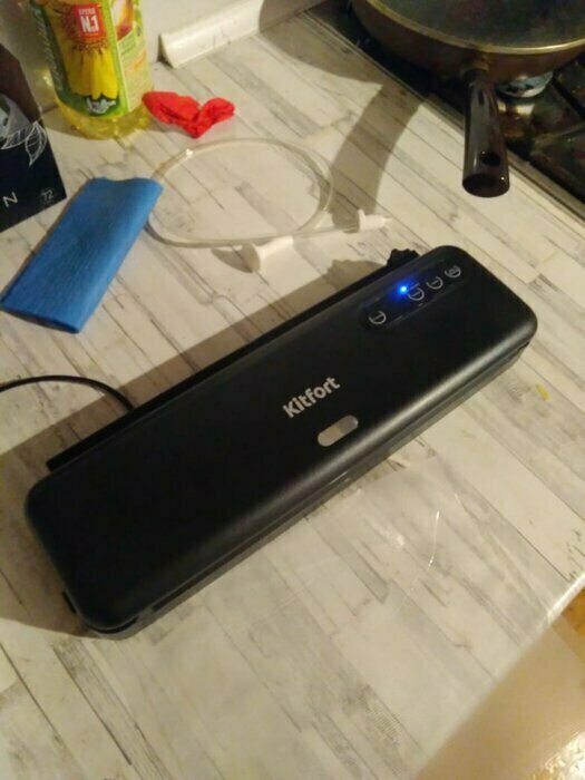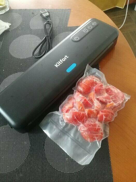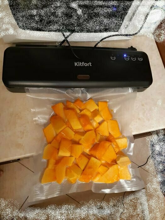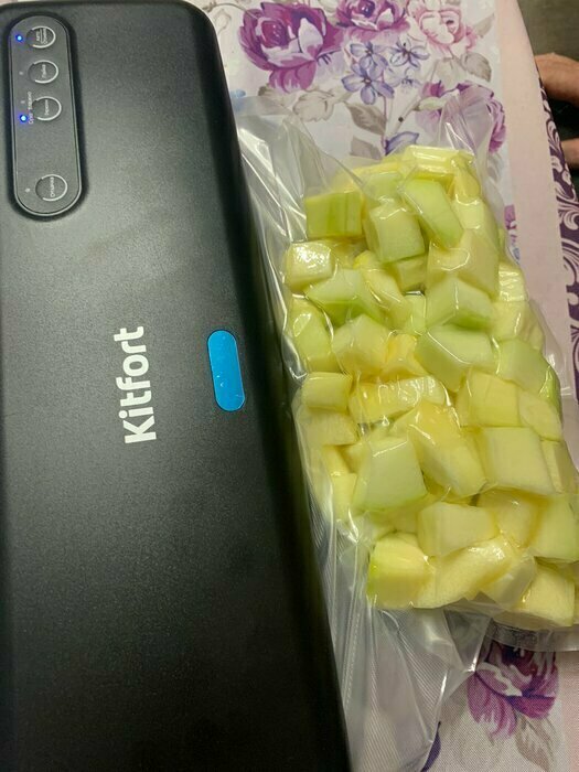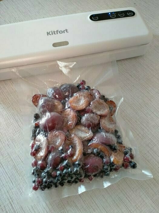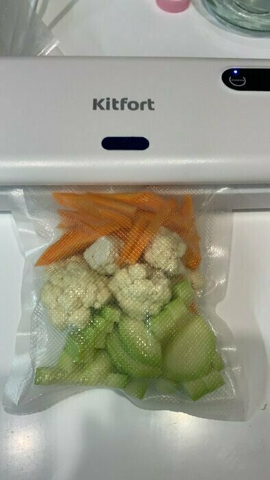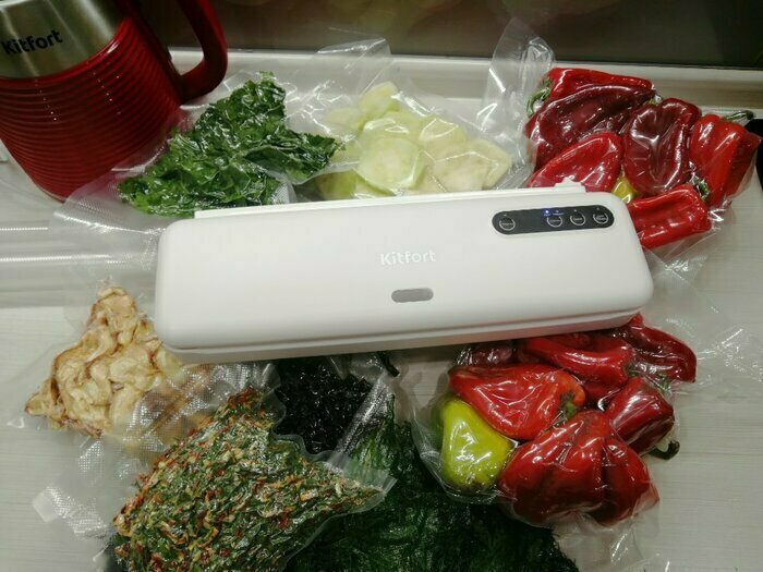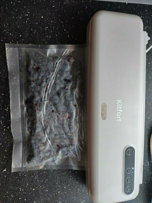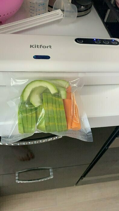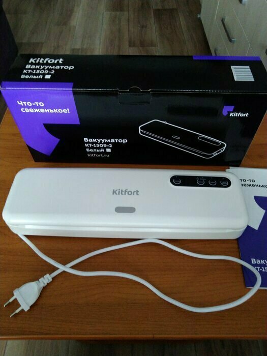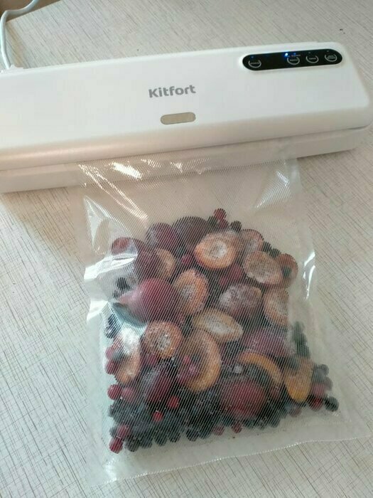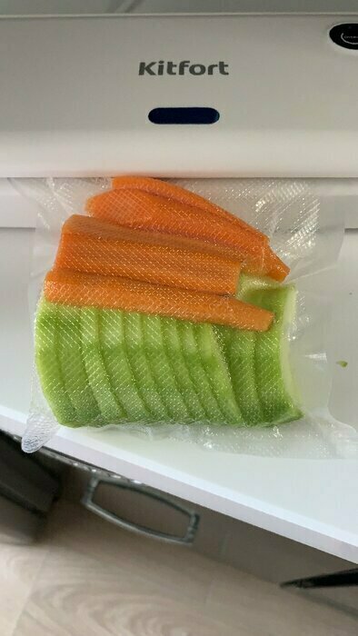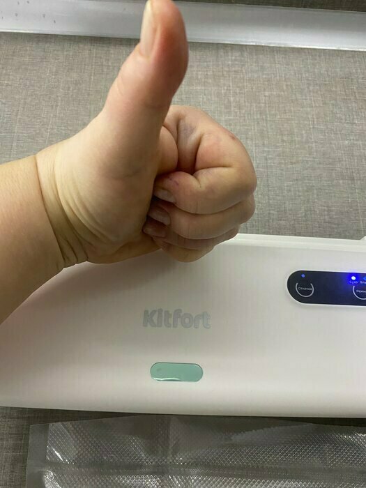 Хороший и качественный вакууматор для фруктов, овощей и других продуктов. Отлично сжимает и вакуумирует без звука. Стали пользоваться сразу, т к товар не пахнет резиной и пластиком. Прост в использовании. Покупкой довольны. Спасибо большое Kitfort за качественную технику, пользуемся всей семьей.