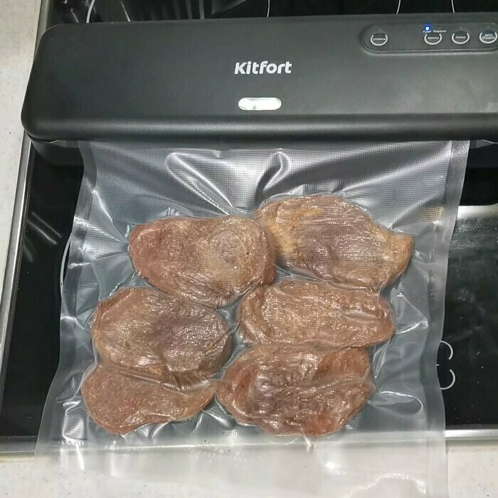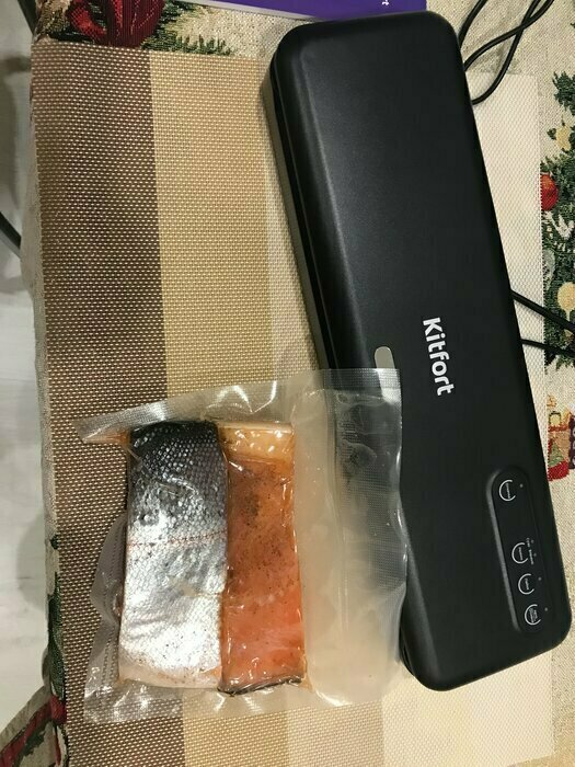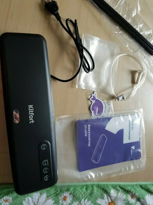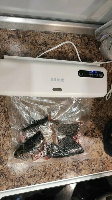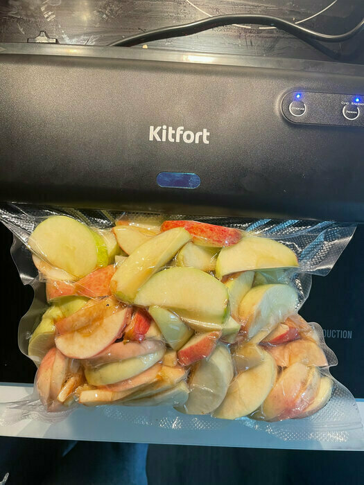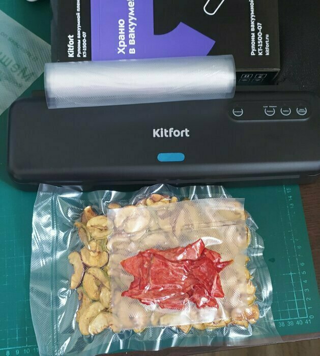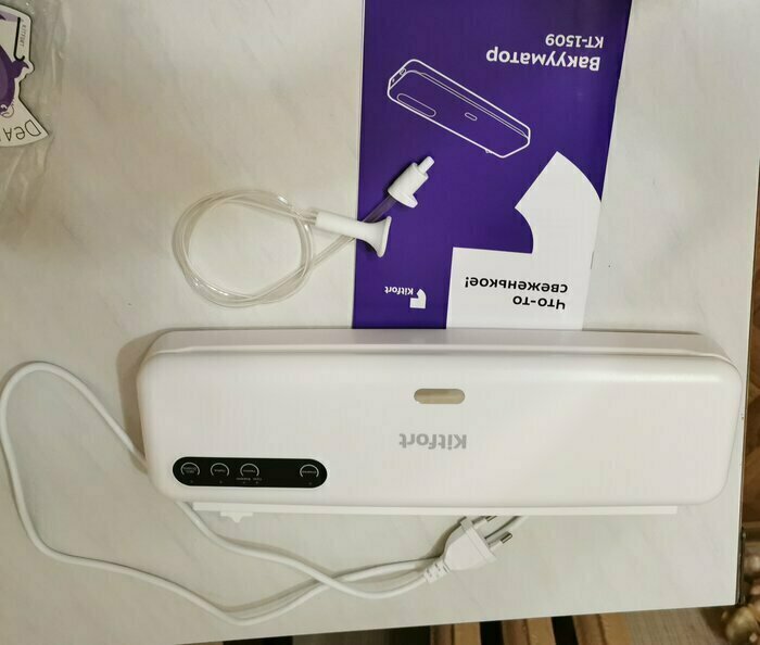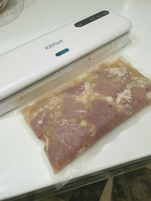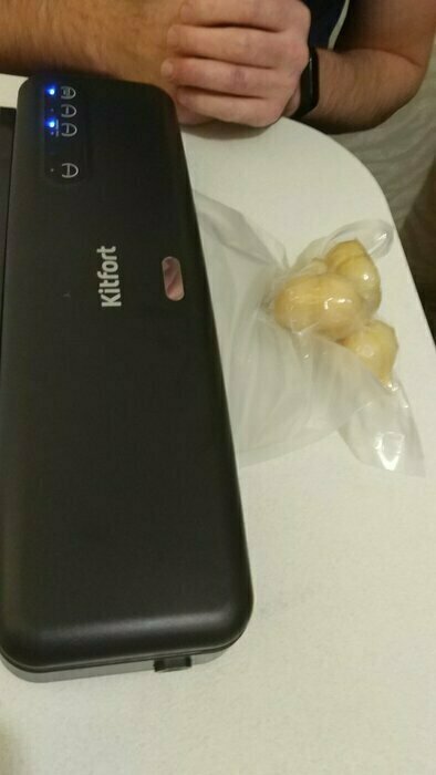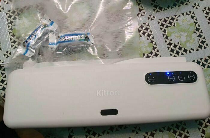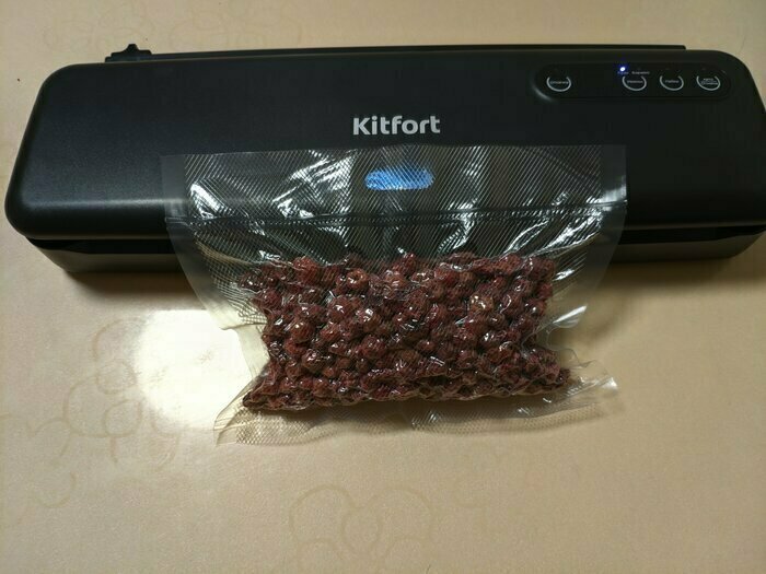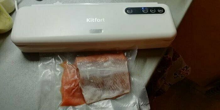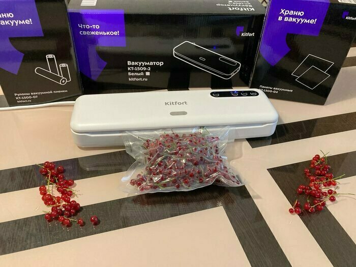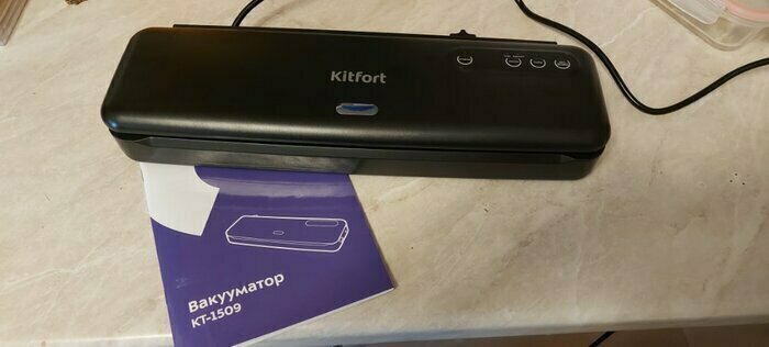 Хороший и качественный вакууматор для фруктов, овощей и других продуктов. Отлично сжимает и вакуумирует без звука. Стали пользоваться сразу, т к товар не пахнет резиной и пластиком. Прост в использовании. Покупкой довольны. Спасибо большое Kitfort за качественную технику, пользуемся всей семьей.