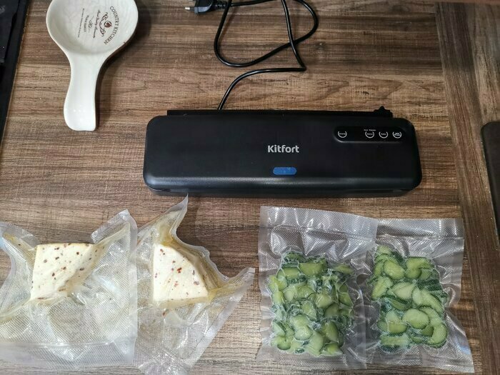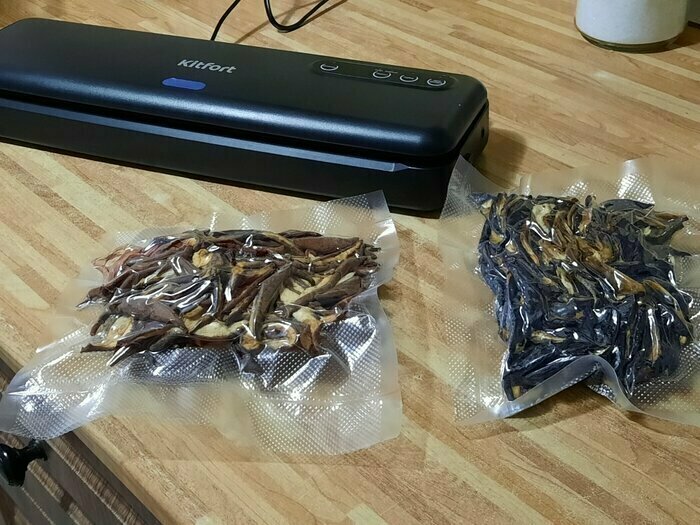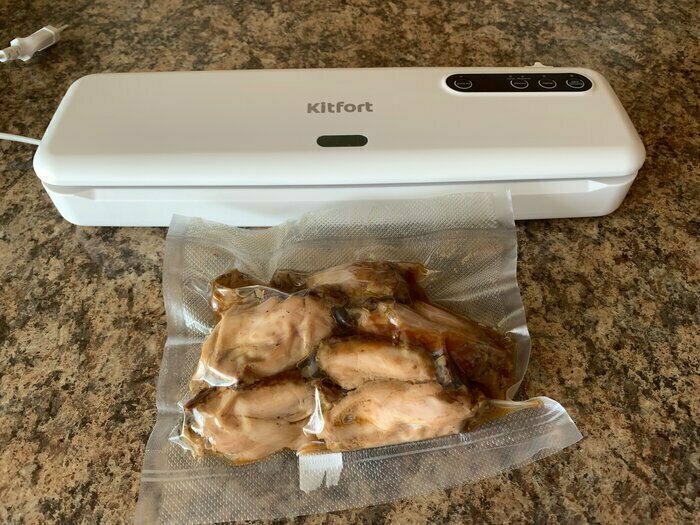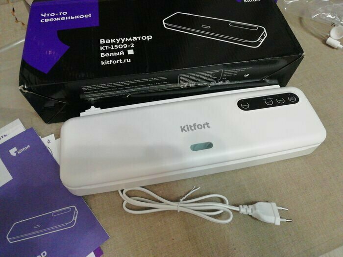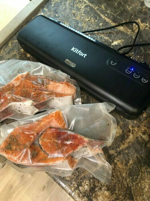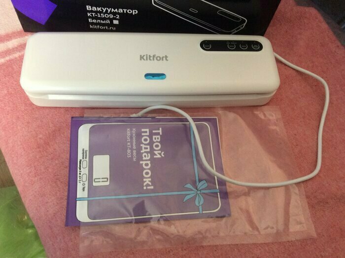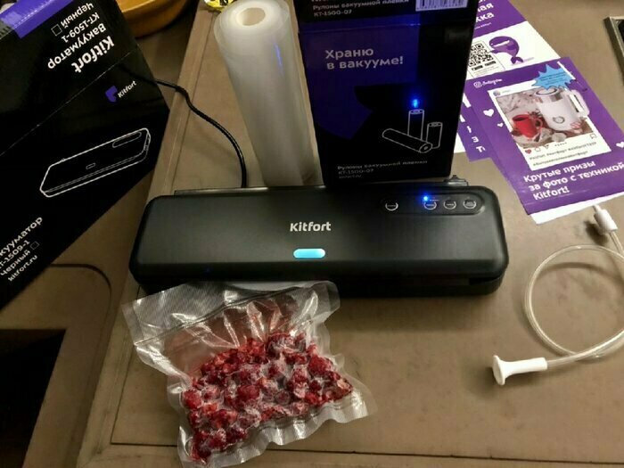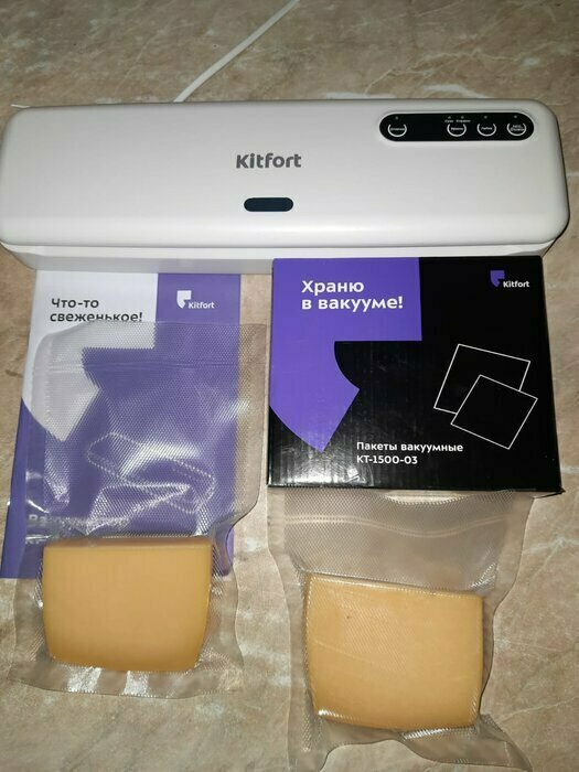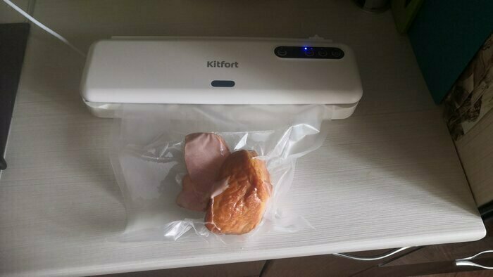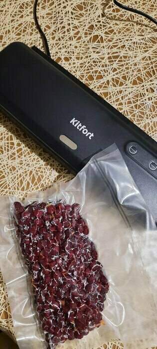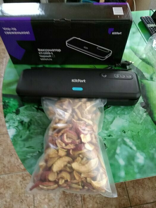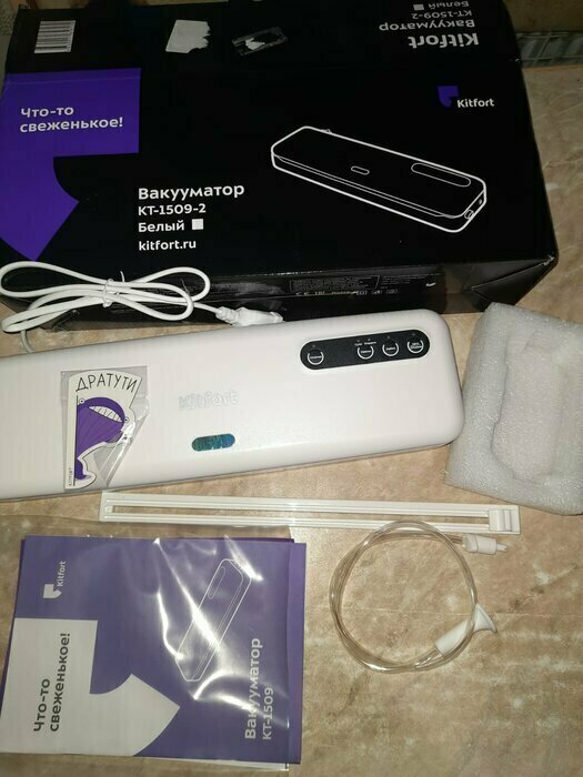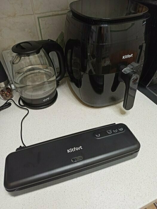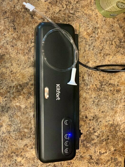 Хороший и качественный вакууматор для фруктов, овощей и других продуктов. Отлично сжимает и вакуумирует без звука. Стали пользоваться сразу, т к товар не пахнет резиной и пластиком. Прост в использовании. Покупкой довольны. Спасибо большое Kitfort за качественную технику, пользуемся всей семьей.