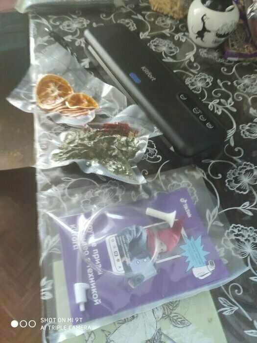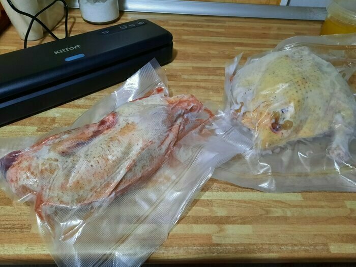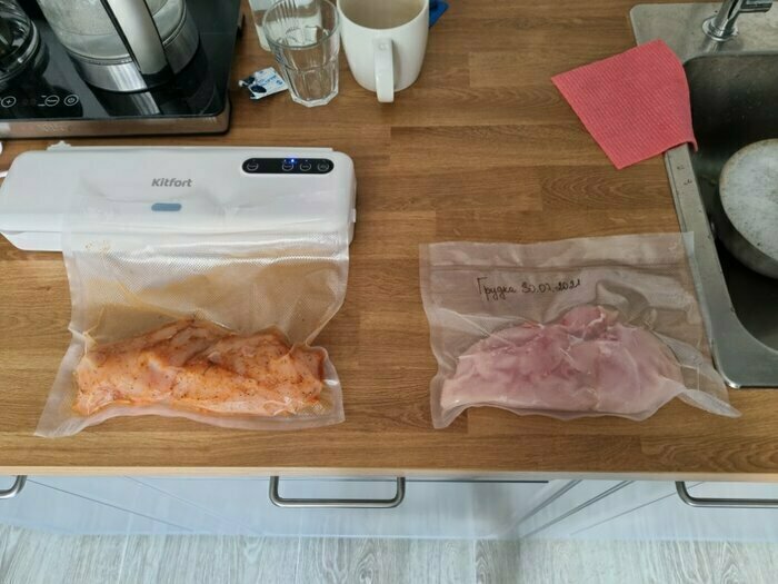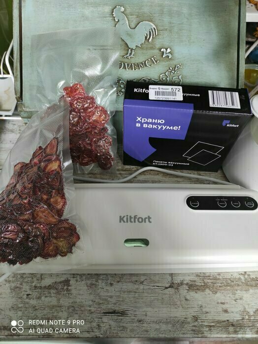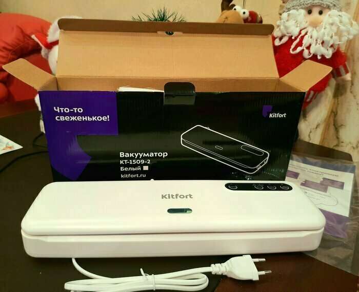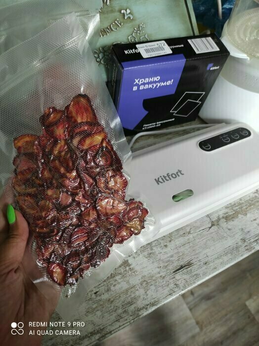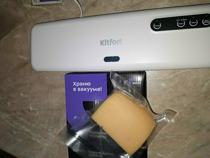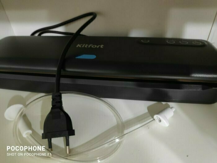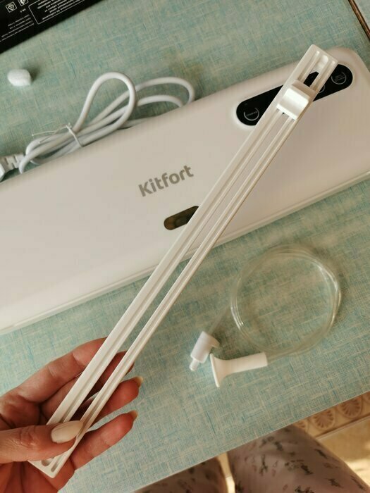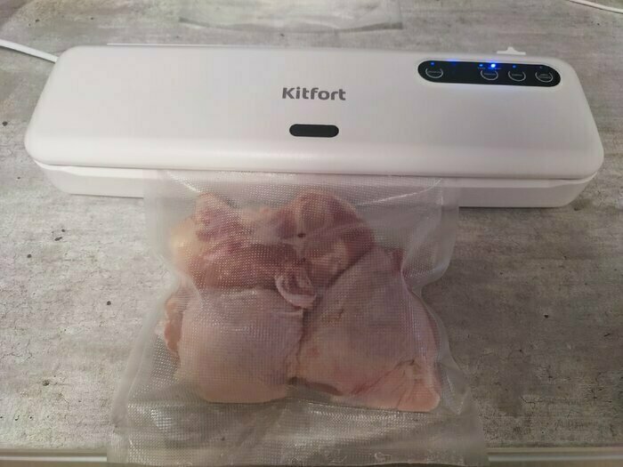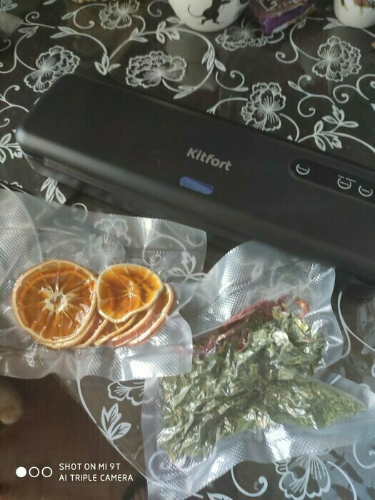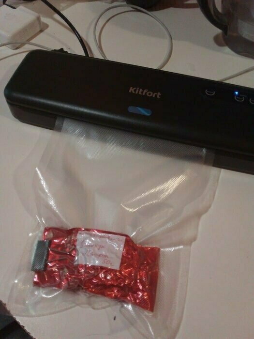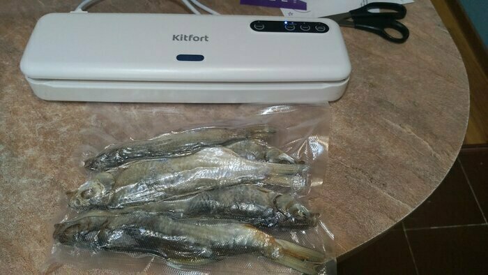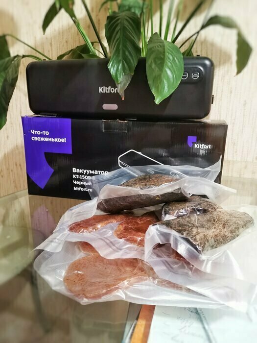 Хороший и качественный вакууматор для фруктов, овощей и других продуктов. Отлично сжимает и вакуумирует без звука. Стали пользоваться сразу, т к товар не пахнет резиной и пластиком. Прост в использовании. Покупкой довольны. Спасибо большое Kitfort за качественную технику, пользуемся всей семьей.