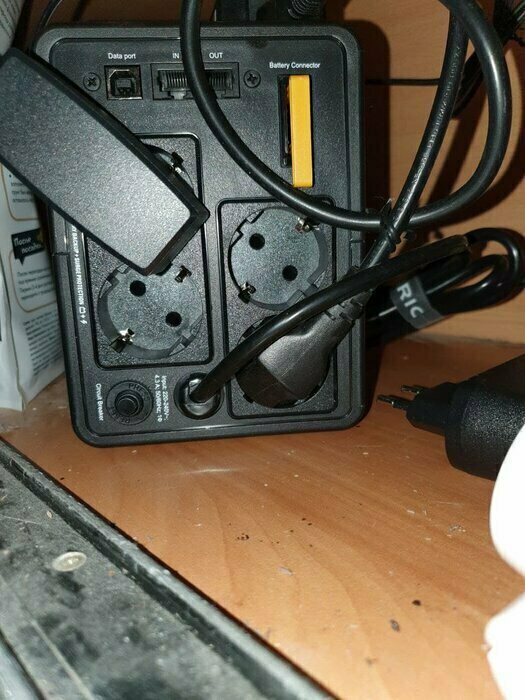 Работает как заявлено. Стандартные розетки немецкого стандарта сзади. Есть некоторое количество настроек через ПО на ПК. Корректно работает с NAS Synology. При работе только роутера и NAS батареи хватает почти на час. Широкий диапазон входных напряжений от 140 до 300В, то что надо для Российских сетей в старых районах.