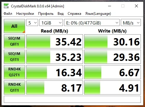 Тестирование флэшки на USB 2.0 с помощью "Crystal Disk Mark" (Вложение 01) и копирование (запись) разных файлов до 3,5Гб общей кучей 42,5Гб из-под Винды (Вложение 02), Винда решила, что ей потребуется примерно 28мин. Так и было. Тоже, на USB 3.0 (старый Lenovo T430 с простым USB 3.0) с помощью "Crystal Disk Mark" (Вложение 03) и копирование (запись) разных файлов до 3,5Гб общей кучей 42,5Гб из-под Винды (Вложение 04), Винда решила, что ей потребуется примерно 3мин. Так и было. В итоге: как говорится, "что хотел, то и получил". Скорость вполне устраивает. Была задача: хорошая флэшка (не алюминий) с быстрой скоростью чтения и чуть меньшей скоростью записи. Задача выполнена, во всяком случае, для моих целей. ! Покупалась НЕ в "Регарде"