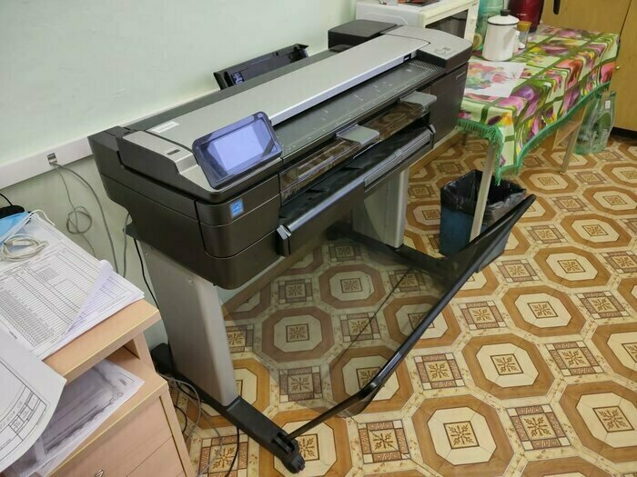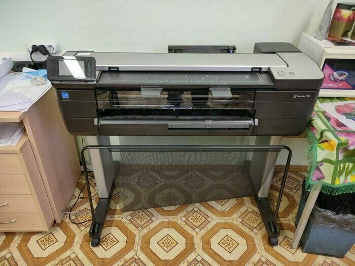 Выбирали широкоформатное МФУ для собственных нужд. Выбор быстро упал на T830. Canon занимал много места. Эпсон пугал расходом чернил при прочистке. А еще пообещали 2 года гарантии на НР. В общем выбрали 830 и остались довольны. Компания, что продала плоттер прислала установщика. Сами не рискнули, но все оказалось просто, могли бы и сами сделать. Хотя так спокойней. Человек приехал, разложил все. Сначала собрал подставку, потом вместе с нашим сотрудником собрали в окончательный вид. И уже более полугода им пользуемся. Объем работы у нас не большой. Несколько листов в день печать, сканирование, копирование. Но, конечно, удобно когда под рукой есть такой универсальный дивайс. В использование понятен. Особенно удобно сканирование на сервер и печать через бесплатную программу клик. Чернила пару раз покупали, проблем с ними нет, всегда есть. Печатаем на бумаге xerox. Пробовали более дешевые варианты, но экономия не большая а на ксероксе получше печатает. Не с чем сравнивать, это наш первый МФУ, но мы и довольны. Работает так же хорошо и просто, как обычный лазерник a4 формата.