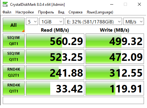 Я не эксперт в железе. Мне достаточно того, что подключил, инициализировал и все работает. Тесты не проводил. Заявленное кол-во памяти соответствует. Загрузил уже на половину - полет нормальный. Посмотрим на дистанции. Если проживает пару лет, то своих денег стоит 100%. P.S Совет для тех, кто как и я, ничего не смыслит в железках. Если система не видит диск, посмотрите в интернете, как инициализировать ssd.