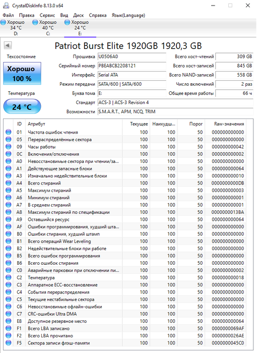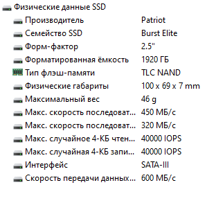 Отзывы о накопителе SSD 1.92Tb Patriot Burst Elite (PBE192TS25SSDR)