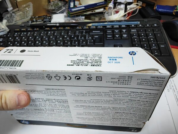 Коробке картриджа написан срок годности 12.2022. По факту плоттер не принимает картридж, так как срок годности картриджа - до 17.05.2017 года!!!!!!!!(((( На 5 лет просроченный картридж..((((