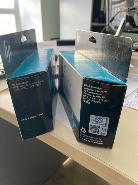 Заказали два картриджа, приехали оперативно, к сожалению подделка срока годности не вызывает сомнения. Нижняя часть упаковки