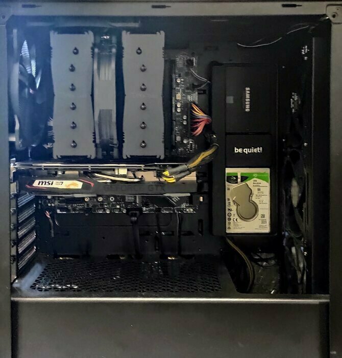 7700k был с cooler master 212 evo , температура мельтешила до 80-90 гр. Перед сменой проца дай думаю сменю охлад. И прифигел, в ремастере метро исход 65 градусов на экстрим настройках с лучами и длсс на 3440х1440 21:9, ток тесселяцию отключил - фпс 78 ( тесселяция жрала 20 кадров). Включил в биосе оптимальный режим - ускорение до 4,8 ггц- температура 75! Но фпс не прибавило ни на грамм, вернулся в сток, в турбобусте ниже 4,5ггц не опускается. Рдр2 тоже плюс 10-20 кадров добавило за счет башни. 7700k задышал мать его, передумал менять пока. Корпусные расположил как на фото, верхний дует вниз! - на планки памяти, и отгоняет горячий воздух, поступаемый от 3070.