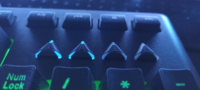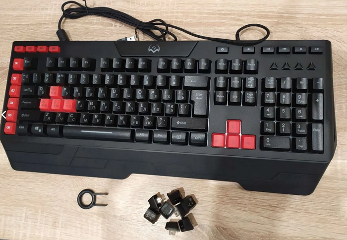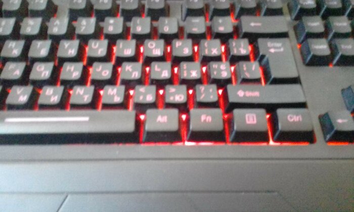 краска очень легко стирается с клавиш, продавлена клавиша 6 доп панели. постоянно в нажатии, пробел до сработки надо нажать оочень сильно. по моему мнению клава брак по сборке.