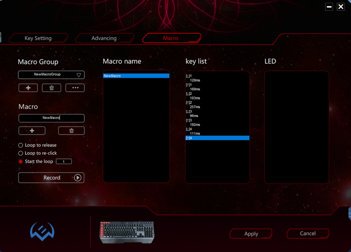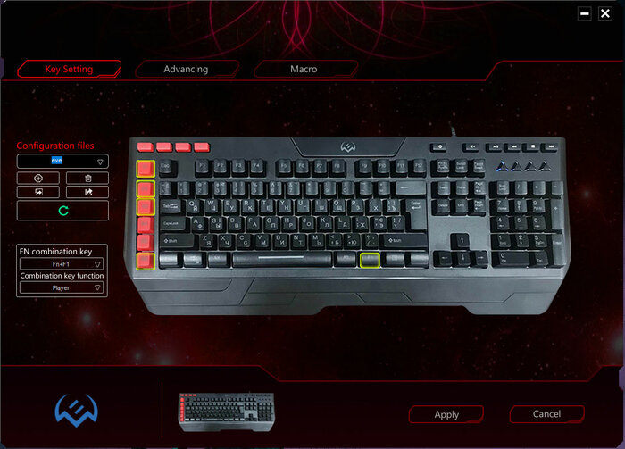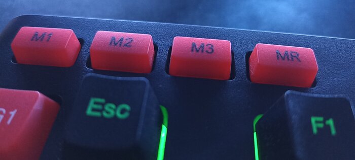 Клавиши довольно приятные. Не бьющая в глаза подсветка в темноте. Возможность настройки макросов. Отдача от клавиш.