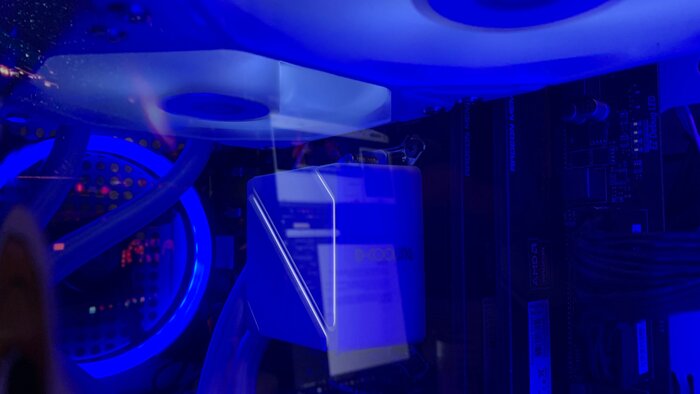 раньше печка R7 жестко грела корпус девушки, решил сделать подарок, теперь стало холоднее, действительно хорошо отводит тепло от нагруженного процессора в режиме монтажа видео и фото, посмотрим как покажет себя дальше, а так, даже помпу не слышно, не то что вентили, в компактный корпус (кубик от Кулер мастера) влез отлично