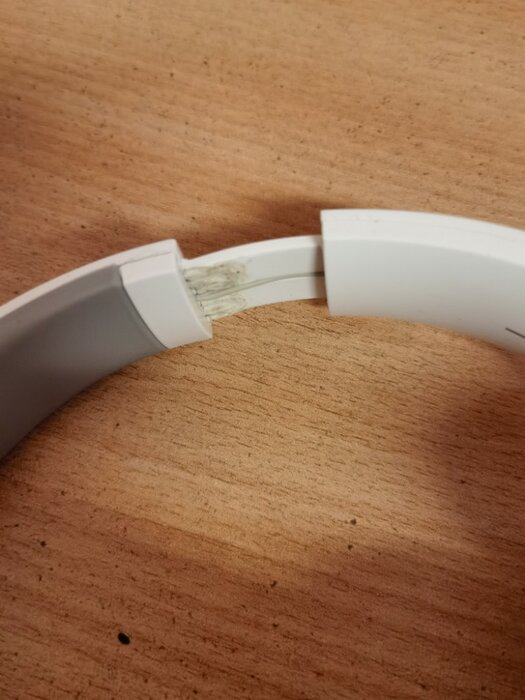 Спустя 5 месяцев использования сломалась дужка. Заколхозил усилители внутри из скрепок при помощи паяльника.