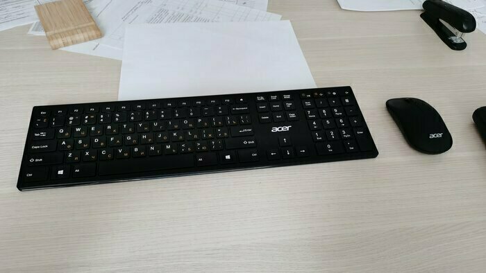 Мне нравятся клавиатуры Acer, но с этой произошёл какой-то сбой. Клавиатура очень часто зависает, будто что-то "перебивает сигнал" - в итоге может отвисать секунд 30, а может и после пары минут где-то "блуждать". Мышь сбоит меньше, но тоже не работает идеально. К сожалению, сейчас покупка выглядит разочарованием. Ранее покупала просто отдельную клавиатуру Acer, она работает чётко и по настоящее время.