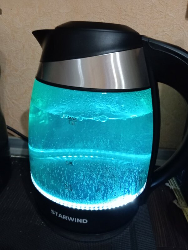 Мощность 2200 это классно закипает моментально, красивый с виду подсветка меня особенно привлекла, нет постороннего запаха с первого кипячения.