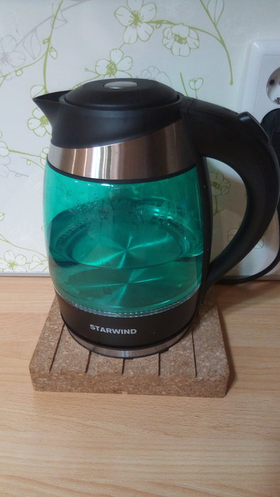 Чайник вполне симпатичный,отлично смотрится на кухне . Выключается вовремя, долго не кипит. Не протекает.