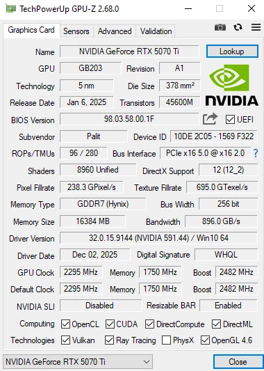 отличная видяха, не жалею о покупке, выбирал между 9700хт, и 5070ти, выбрал вторую в итоге, приехала в пупырке, новая абсолютно, по сравнению с моей предыдущей RX6500XT, это просто звездолёт, прирост фпс 500%, ROPS'ы на месте, остальное тоже, холодная карта, не зря её купил)