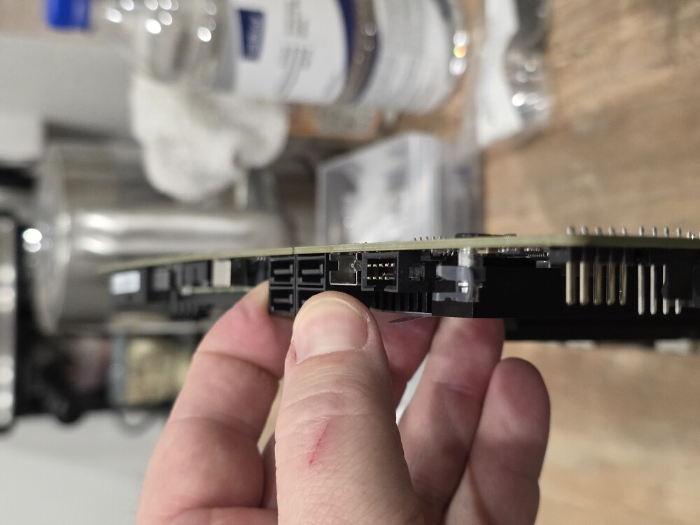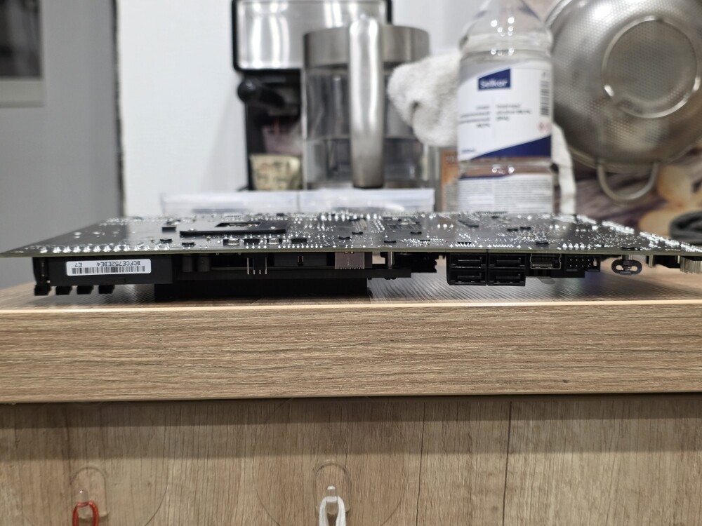 Мать поведённая (кривая). Это есть quality issue. Но слава богу, что она работает. Я купил её с доставкой через пункт выдачи Yandex. Если бы покупал в магазине, то такой бы брак точно не взял. Жаль не могу выложить на уровне видео уровень её "прямизны" (тут нет такого функционала).