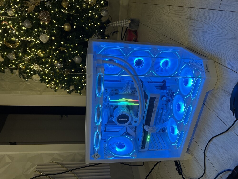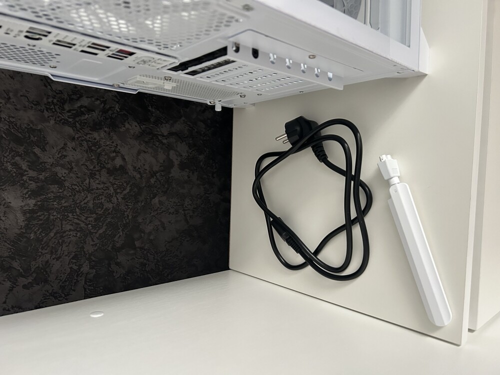 добротно собран, не люфтит. Кабели все спрятал за стенку, выглядит как из шоурума. Вентиляторы тихие, подсветка регулируется. Белый цвет освежает комнату, не пачкается. За такую цену ПРИЯТНО