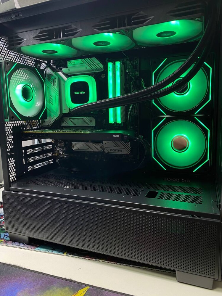 XASTRA новый бренд на рынке, но достаточно неплохо уже себя зарекомендовавший. Собираю не первый раз в их корпусах, пока не бренд новый , хорошее соотношение цены и качества. Что внутри: Что порадовало, это 10-портовый ARGB PWM контроллер в комплекте! Я вообще ничего не покупал, нижние вентиляторы , если ставить, то только для красоты, по этому я их не ставил. Вентиляторы в комплекте очень эффектно смотрятся, в стиле Lian Li, у контроллера много режимов, порядка 30, но все довольно интересные, но можно перевести контроллер в режим управления с материнской платы, Комплектные вентиляторы достаточно тихие, поток средний у них, но сборка негорячая. Трехсекционная водянка наверху встала как родная