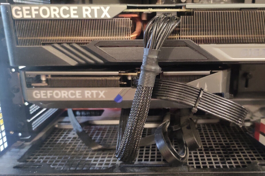 Металлический бэкплэйт с термопрокладками. Вентиляторы отключаются в простое, не шумные на минималках.