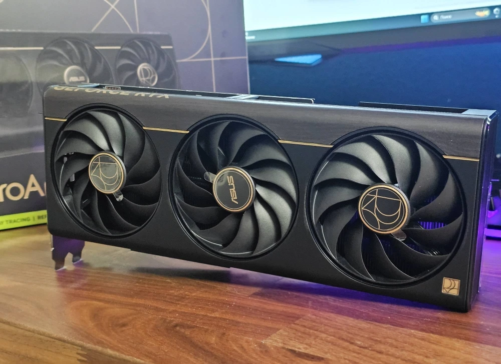 Она действительно тихая, действительно чувствуется то самое ощущение от ProArt. Да, можно взять на 20-25 тысяч дешевле 5070ti, но хочется этого чувства, дерево, тишина. Пока нет на ютубе и нигде вообще ни одного обзора, поэтому хочу хочется ответить на вопросы, которые у меня возникли. Из плюсов - да, внутри испарительная камера. В играх температура у меня выше 65 градусов не поднималась. На задней стороне USB имеется (для подключения видео), но и заряжать от него можно, да. В комплект идёт небольшая совсем, но удобная подставочка, хотя карта не большая и не тяжелая, 305 мм в 2.5 слота. Подсвечивается лишь надпись ProArt (любым цветом) и это можно отключить в фирменном приложении.