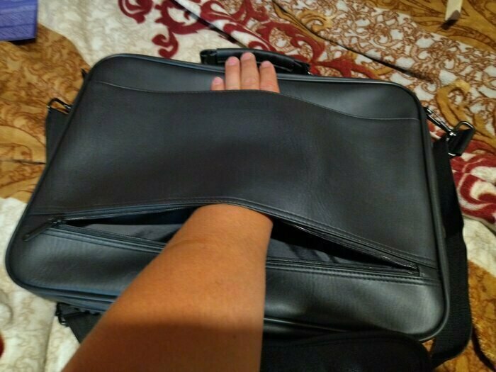 1. Крепкая, недорогая, емкая сумка. 2. Кожзам легко чистится/отмывается от пыли - для меня принципиально, часто бываю на строящихся объектах. 3. Ношу в ней ноутбук 14", документацию, преобразователи интерфейсов и прочую мелочевку. Без проблем выдерживает массу такого моего "выездного набора", это 6.5-7 кг (вместе с сумкой), специально взвешивал. 4. Хорошо защищает содержимое от ударов по внешней плоскости и с боков благодаря полужесткой конструкции с поролоновыми демпферами. 5. Три полноразмерных отсека плюс два кармашка для мелочевки