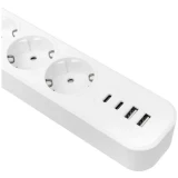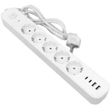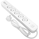 удлинитель, 5 розеток, макс. нагрузка 3680 Вт, макс. ток 16 А, USB, заземление, выключатель на корпусе, длина кабеля: 1.5 м, белый