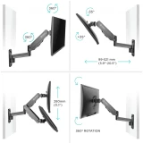 для монитора, настенный, 13-34", до 8 кг, выдвижной, наклонный, поворотный, чёрный