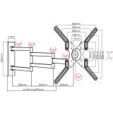 для телевизора/панели, настенный, 26-60", до 40 кг, выдвижной, наклонный, поворотный, чёрный