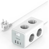 сетевой фильтр, 3 розетки, макс. нагрузка 4000 Вт, макс. ток 16 А, USB, выключатель на корпусе, длина кабеля: 3 м, белый, серый