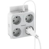 сетевой фильтр, 2 розетки, макс. нагрузка 3600 Вт, макс. ток 16 А, USB, заземление, быстрая USB-зарядка, белый