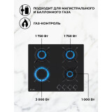 газовая варочная панель, независимая установка, количество конфорок: 3, поворотные переключатели, WOK конфорка