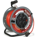 удлинитель, 4 розетки, макс. нагрузка 2200 Вт, заземление, выключатель на корпусе, длина кабеля: 50 м, красный